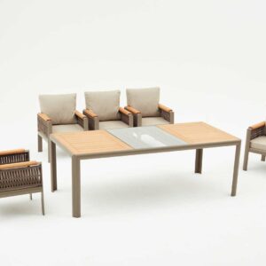 TORINO Sofa Set je elegantan ansambl nameštaja za spoljne prostore, izrađen od visokokvalitetnog drveta iroko. Ovaj set uključuje prostrani trosjed, dve udobne fotelje i praktičan coffee sto, pružajući savršen ...