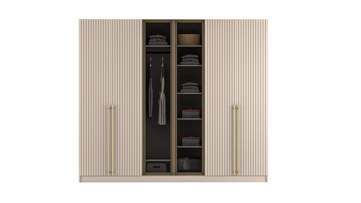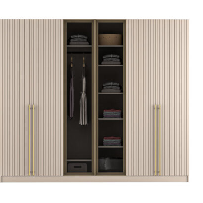 BLUSH Ormar je esencija raskoši i praktičnosti za svaki dom. Izrađen pažljivo odabranih drvenih materijala visoke kvalitete, ovaj ormar osvaja svojom izdržljivošću i sofisticiranim dizajnom. S dimenzijama 254x64x228 cm, ovaj ormar pruža obilje prostora za organizaciju vaše odjeće, obuće i ostalih potrepština. Unutrašnjost ormara je inteligentno dizajnirana kako bi omogućila optimalnu organizaciju vaših stvari, sa policama, vješalicama i ladicama koje pružaju praktično rješenje za skladištenje. Bez obzira na vaše potrebe za skladištenjem, BLUSH Ormar će zadovoljiti i najzahtjevnije standarde svojom funkcionalnošću i elegancijom. Oplemenite svoj dom ovim raskošnim komadom namještaja koji će istovremeno dodati notu stila i organizacije vašem prostoru.