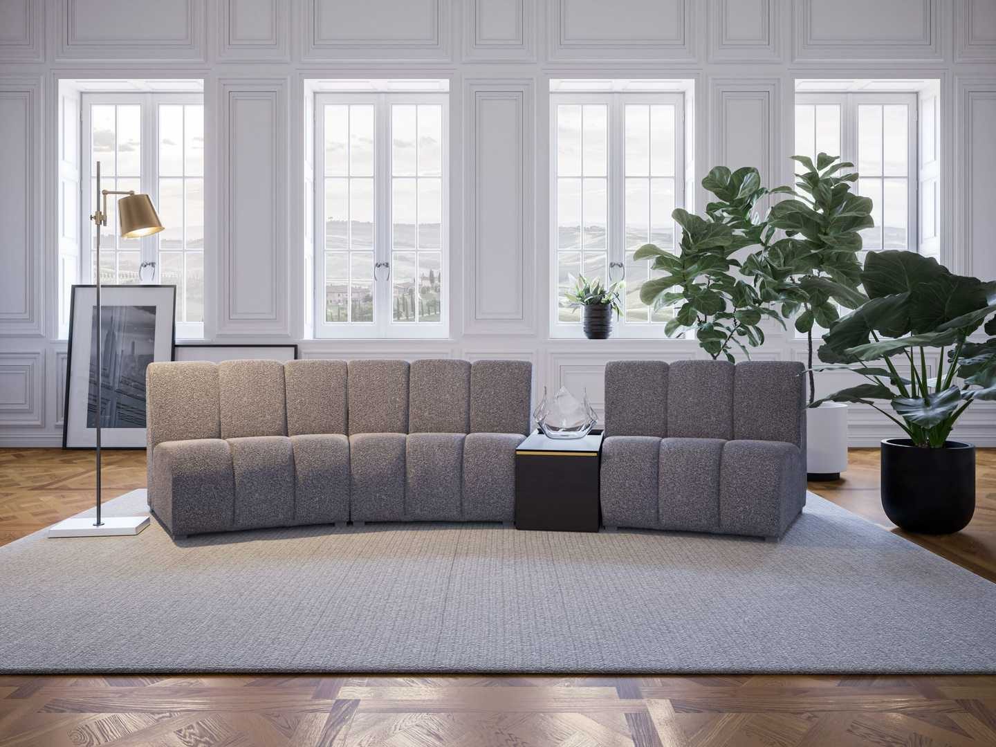 Sofisticirana polukružna sofa Carmine koja privlači pažnju svojim neobičnim dizajnom.