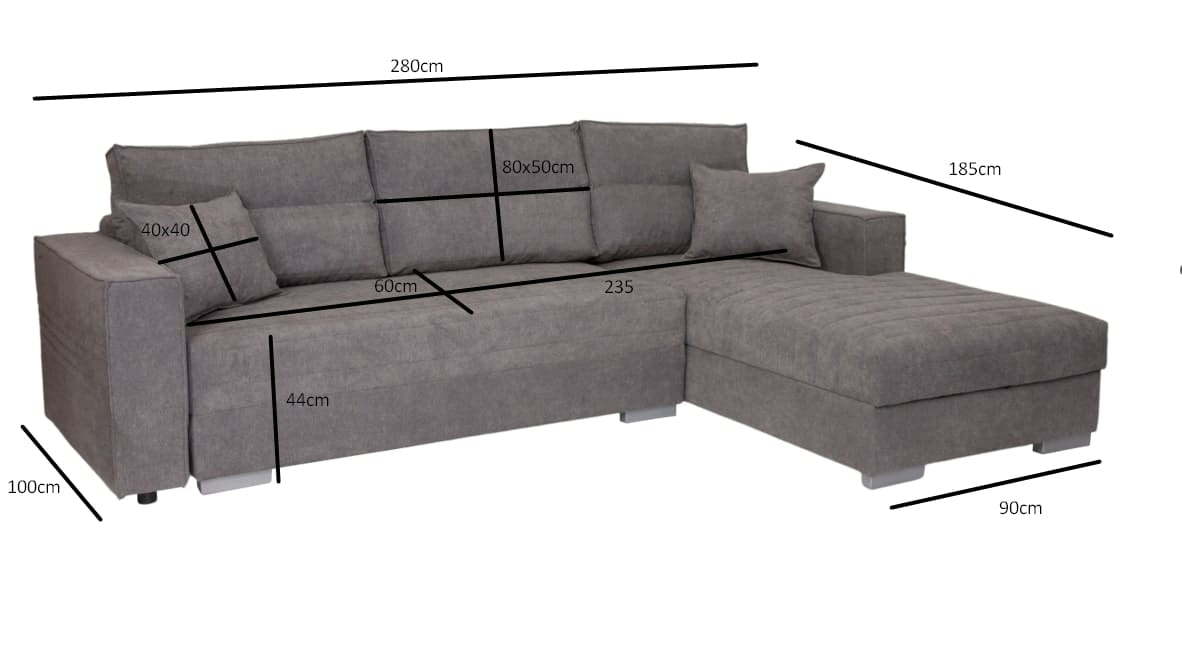 DANI L KUTNA GARNITURA je savršen spoj suvremenog dizajna i višestruke funkcionalnosti. Sa dimenzijama D: 280 cm, S: 185 cm, V: 88 cm, ova kutna garnitura prilagođava se različitim prostornim potrebama.