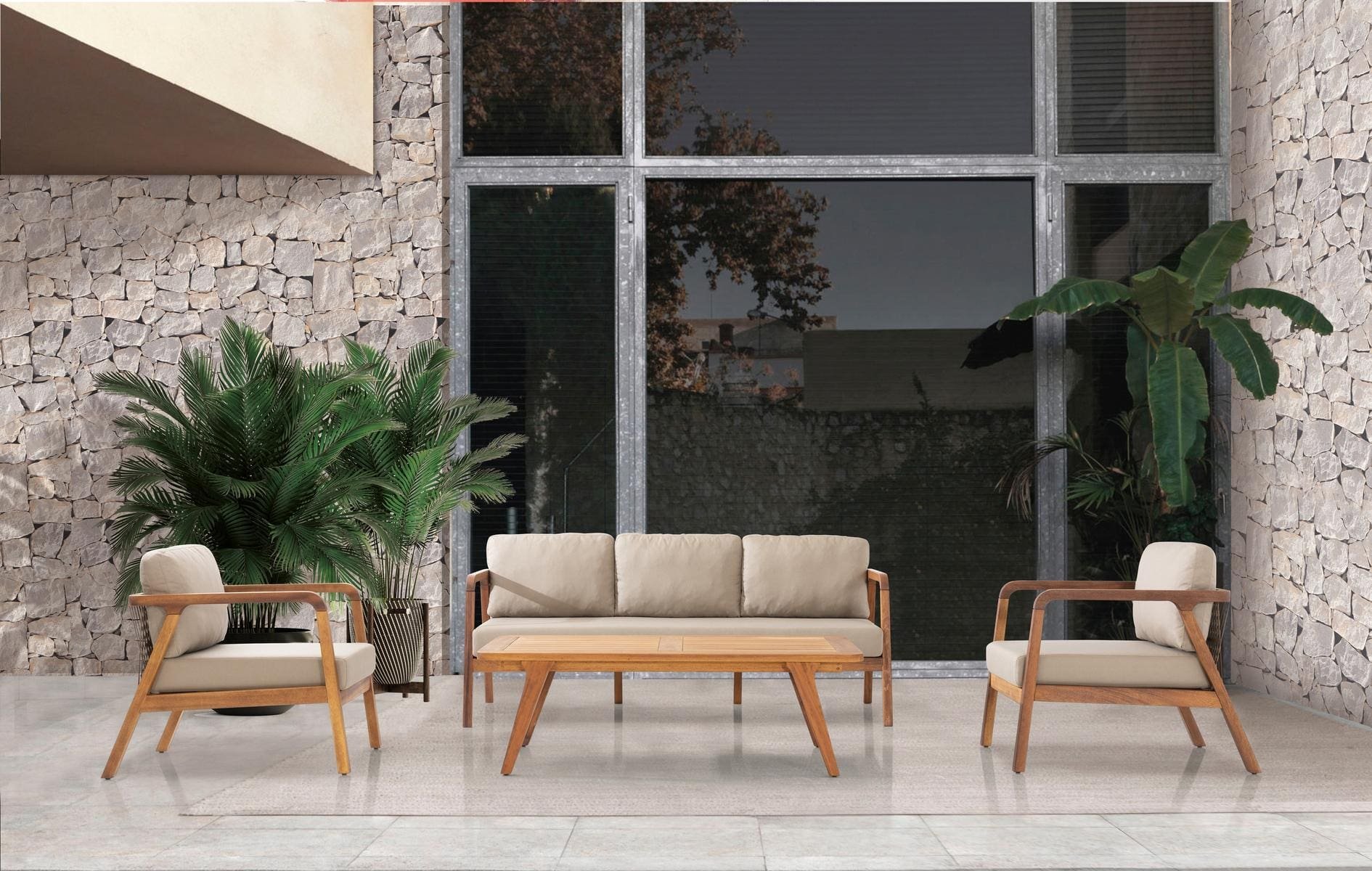 IDEA Sofa Set je elegantan komplet nameštaja za spoljne prostore, izrađen od visokokvalitetnog drveta iroka. Sastoji se od udobnog troseda, dve fotelje i coffee stola, pružajući udobnost i stil za opuštanje na otvorenom.