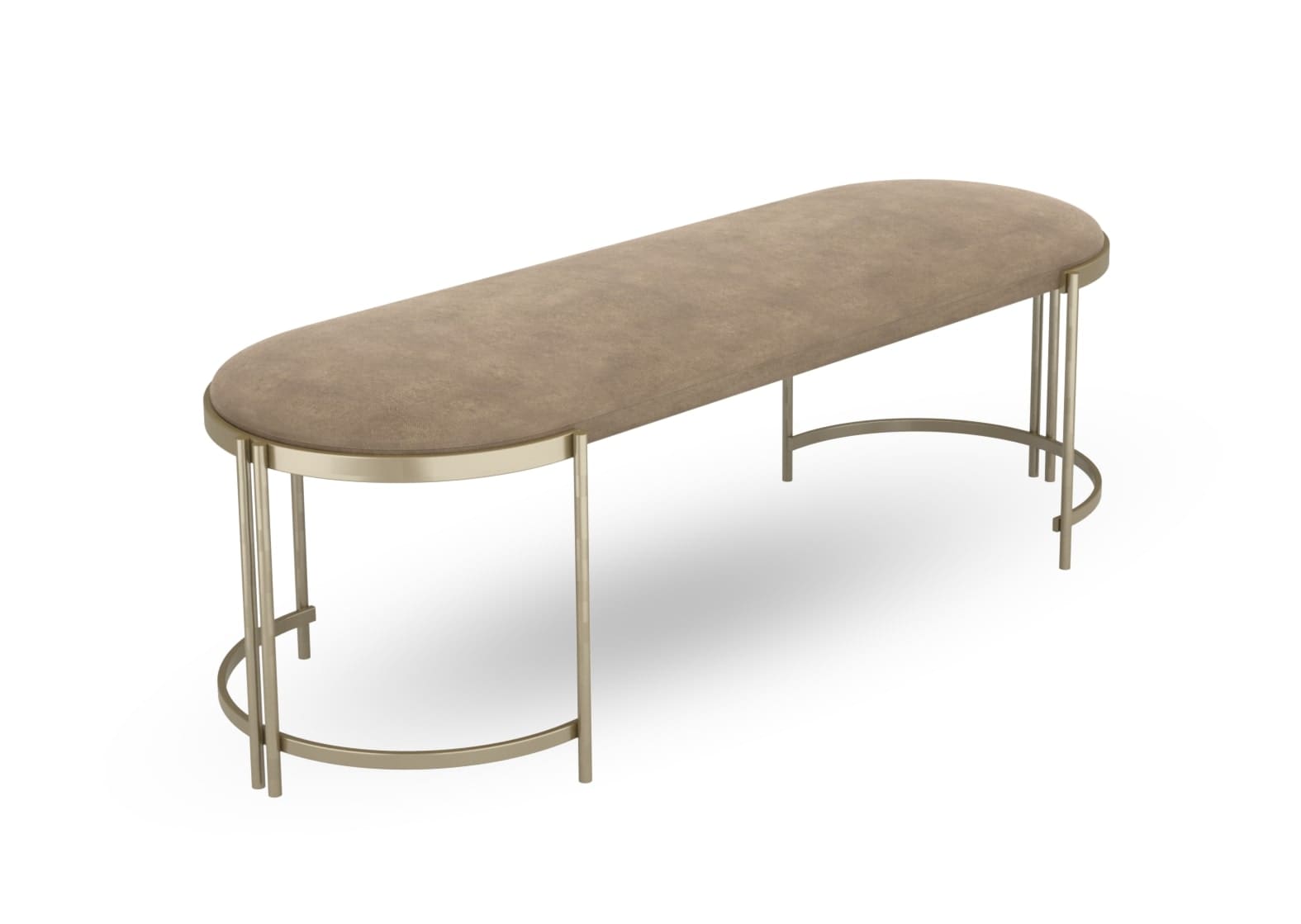 BLUSH klupa kombinuje čvrstu metalnu konstrukciju s visokokvalitetnom tkaninom, pružajući moderan i udoban dodatak svakom prostoru.