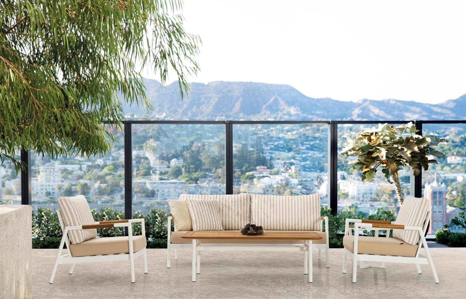Liva Sofa Set je moderan komplet nameštaja koji spaja udobnost i elegantan dizajn. Ovaj set se sastoji od udobnog troseda, dve fotelje i coffee stola, izrađenih od visokokvalitetnog aluminijuma, pružajući udoban i stilizovan prostor za opuštanje.