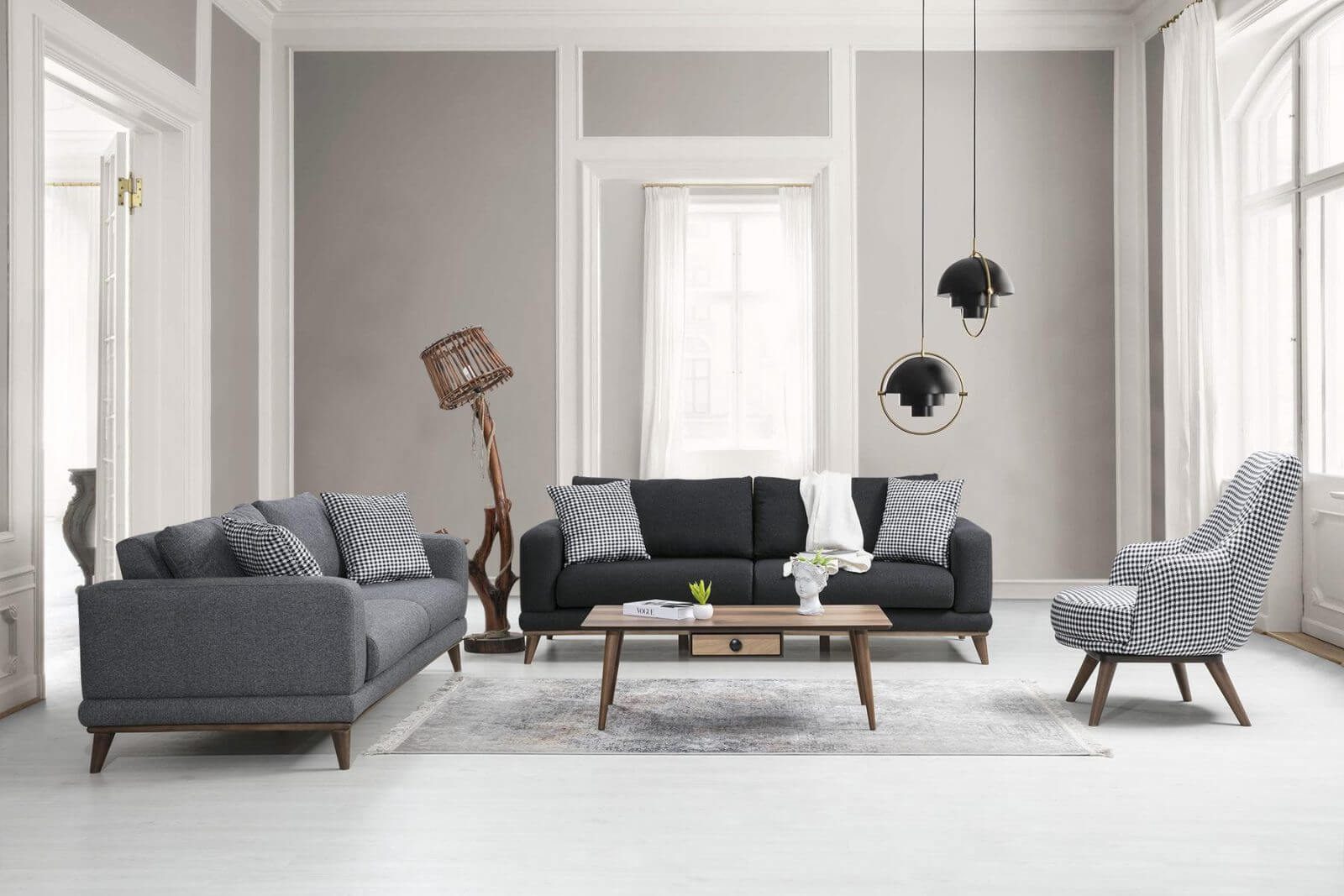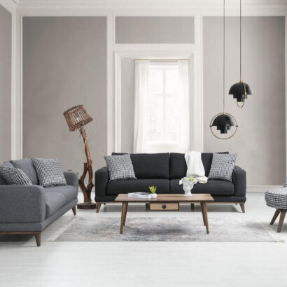 Oslo Sofa Set predstavlja vrhunski komad namještaja koji će obogatiti bilo koji prostor svojom elegancijom i udobnošću. Svaki komad ovog seta ističe se predivnim tekstilom koji pruža ne samo izuzetnu udobnost, već i estetski užitak. Dizajn drvenih nogu dodaje dozu prirodnog šarma i elegancije, istovremeno pružajući stabilnost i čvrstoću. Ovaj set nije samo funkcionalan, već i estetski privlačan, ističući se svojim zanimljivim dizajnom i pažljivo odabranim materijalima. Oslo Sofa Set je savršen izbor za one koji cijene kvalitetu, stil i udobnost u svom domu. Udobnost, luksuz i sofisticiranost – sve to pruža Oslo Sofa Set.