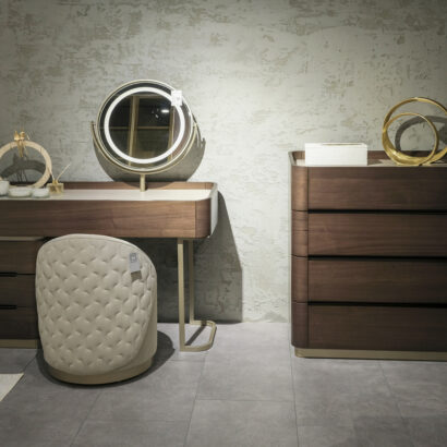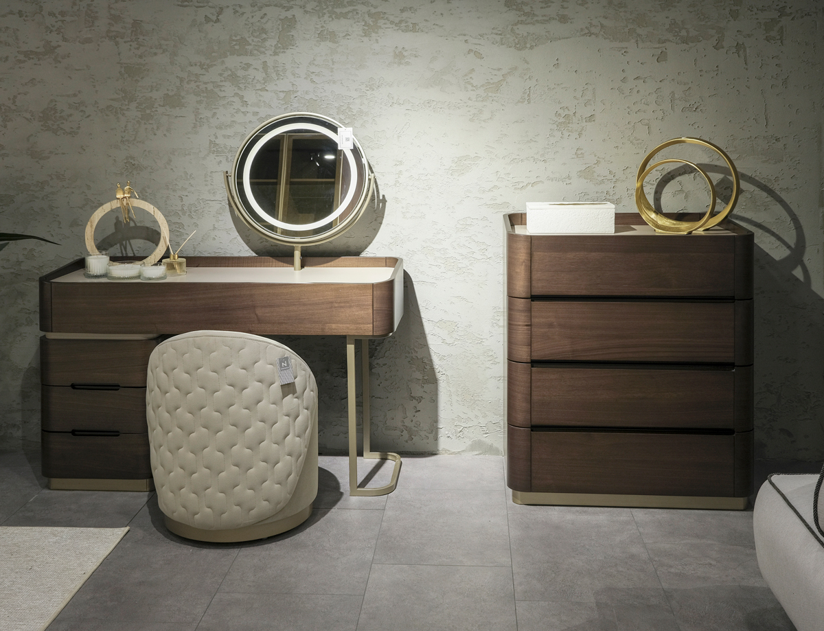 Sastoji se od: Ormara (6 vrata), Kreveta (bez madraca), Dva noćna ormarića, Stola za šminkanje (ne uključuje ogledalo).